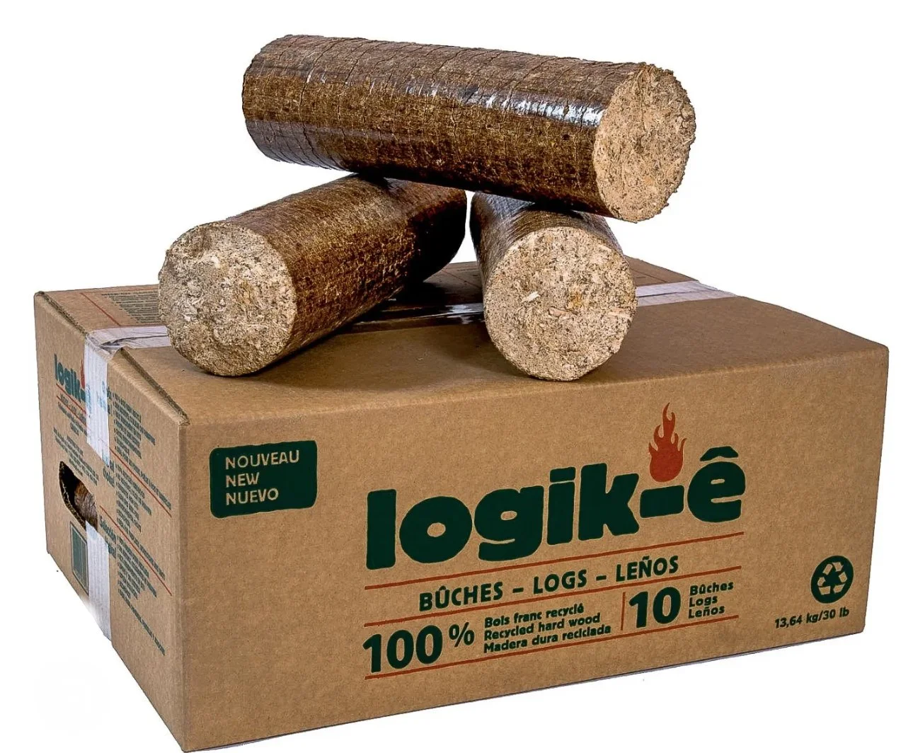 Logs are made out of recycled, compressed hardwood. A great alternative to burning regular firewood! (10 logs per box)